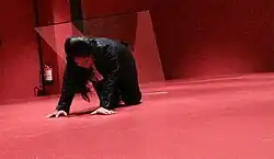 Melati Suryodarmo (born 12 July 1969) is an Indonesian durational performance artist. Her physically demanding performances make use of repetitive motions and often last for many hours, sometimes reaching "a level of factual absurdity". Suryodarmo has performed and exhibited throughout Europe and Asia as well as in North America. Born in Surakarta, she attended Padjadjaran University, graduating with a degree in international relations before moving to Germany. She lived there for 20 years, studying performance art at the Braunschweig University of Art with Butoh choreographer Anzu Furukawa and performance artist Marina Abramović.