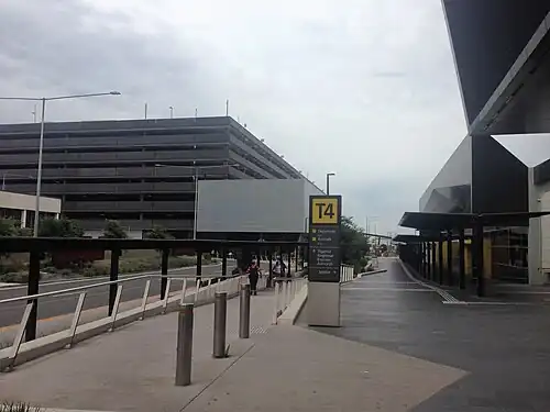 In July 2024, Melbourne Airport confirmed it was willing to work with the Victorian Government on the delivery of an above-ground station, however, the time taken to conduct the negotiations up to that point caused the project to be delayed until 2033, a four-year delay.[12] The proposed site for the station is indicated as between Terminals 3 and 4 above the inbound motor vehicle roads. Concept art indicates elevated walkways to Terminals 3, 4, and a walkway towards Terminals 1 and 2 in front of the current PARKROYAL hotel and multi storey parking complex.[13]