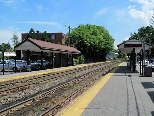 Melrose/Cedar Park station is an MBTA Commuter Rail station located in downtown Melrose, Massachusetts. The station has two low-level platforms serving the two tracks of the Haverhill Line; it is not accessible.