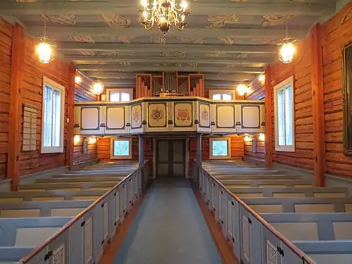 Melum Church (Norwegian: Melum kirke; historically: Mælum kirke) is a parish church of the Church of Norway in Skien Municipality in Telemark county, Norway. It is located in the village of Melum. It is the church for the Melum parish which is part of the Skien prosti (deanery) in the Diocese of Agder og Telemark. The white, wooden church was built in a long church design in 1728 using plans drawn up by an unknown architect. The church seats about 150 people.[1][2]