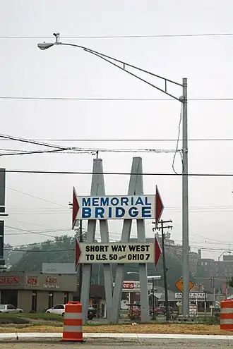 The Memorial Bridge, locally known as the toll bridge, crosses the Ohio River connecting Belpre, Ohio and Parkersburg, West Virginia. The bridge is an alternate route to access U.S. Route 50 in Ohio from central Parkersburg. Constructed and formerly owned by the City of Parkersburg, the bridge was purchased in 2022 by Parkersburg Bridge Partners, a private entity that is a subsidiary of Colorado-based United Bridge Partners.[1]