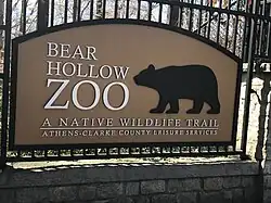 The Bear Hollow Zoo located in Memorial Park is a zoo with animals that are non-releasable to the wild. The zoo is most known for itsAmerican black bears, DJ, Athena, and Yonah. In May 2025, DJ, who was estimated to be 22 years old, was euthanized after being diagnosed with spinal osteoarthritis.[2] Bear Hollow Zoo also includes white-tailed deer, an American alligator, North American river otters, great horned owls, and a reptile house.[3]