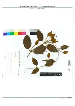 Mendoncia velloziana is a species of flowering plant in the family Acanthaceae. It is a liana native to tropical South America, ranging from Colombia and Peru through northern, eastern, and southern Brazil to Paraguay.[1]