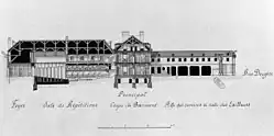 The music required for these entertainments was also a concern of the Menus-Plaisirs du Roi. Beginning in 1762 the music section was established on a large site extending north from the rue Bergère and west of the rue du Faubourg Poissonnière. The facilities included what had previously been the theatre of the Opéra-Comique at the Saint-Laurent Fair.[14] The site was soon expanded until it reached the rue Richer on the north.