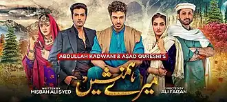 Meray Humnasheen (Urdu: میرے ہمنشیں, transl. My Partner) is a 2022 Pakistani television drama series, written by Misbah Ali Syed, directed by Ali Faizan and produced by Abdullah Kadwani and Asad Qureshi. The series stars Hiba Bukhari, Ahsan Khan, Shahzad Sheikh, Syed Jibran, Momina Iqbal & Moomal Khalid.[1] It revolves around the journey of an aspiring doctor, who aims to bring medical care in her area as she has lost her parents due to its unavailability and faces several hurdles to achieve it. It aired from 6 May 2022 to 1 October 2022, every Friday and Saturday, with a total of 43 episodes.[2]