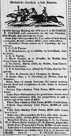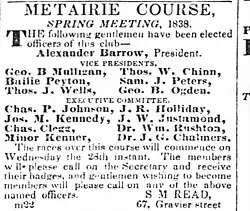 5. ^ "Metairie Jockey Club Races". The Times-Picayune. New Orleans, Louisiana. March 8, 1839. p. 3 – via Newspapers.com.