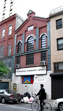 The Metropolitan Community Church of New York (MCCNY) is an LGBTQ (lesbian, gay, bisexual, and transgender) Christian church in New York City, located at 446 36th Street between Ninth and Tenth Avenue in the Hell's Kitchen neighborhood on the West Side of Midtown Manhattan.
