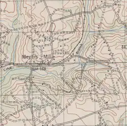 The Meyers Mill community is named after the Meyer family. It was an agricultural community. In the early 1940s, a fire destroyed about half of the community. By the early 1950s, Meyers Mill had a population of about 50, about ten residences, three commercial buildings, one church, one cotton gin, and the railroad station. The people were largely African-Americans.