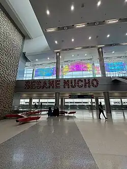 "Bésame Mucho" sign at the international arrivals of the South Terminal of the airport.