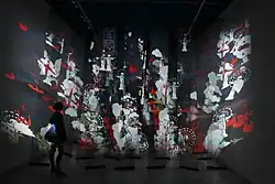 Recently Michael Bielicky and Kamila B. Richter increasingly follow invitations to provide solo exhibitions and bring their series together in multitudes of walls and spaces. Stemming from the Lost Objects experience in the Opera House, all four series are brought together in a self-similar, compartmentalized, endless, dense, and visitor-controlled manner. Here not the pictograms and their intricate interaction are the main protagonists, but the wandering visitors, who stride through the cut-up, translucent, and three-dimensionally hung projection canvases, over and over covered with pictograms and texts and become pictograms themselves. Michael Bielicky and Kamila B. Richter had solo exhibits at Strasbourg (2016)[12] and Havana (2017).
