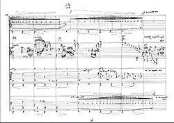 In works such as adjusting to beams falling and his String Quartet #1, he attempts to convey an expression similar to Edward Said's notion of an artwork exhibiting "intransigence, difficulty, and unresolved contradiction" in order to provide an "occasion to stir up more anxiety, tamper irrevocably with the possibility of closure and leave the audience more perplexed than before... to explore...a nonharmonious, non-serene tension, and above all, a sort of deliberately unproductive productiveness, going 'against'..."[5]
