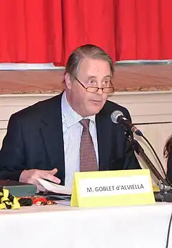 Count[1] Michael Goblet d'Alviella is a Belgian liberal politician, counsel-general,[1] and mayor of Court-Saint-Étienne. He is a son of Jean Goblet d'Alviella and his wife, June Dierdre Corfield. He is the grandson of Sir Conrad Laurence Corfield.