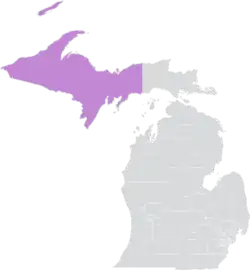 The district was located entirely within Michigan's 1st congressional district, and overlapped with the 108th, 109th, and 110th districts of the Michigan House of Representatives.[7] It bordered the state of Wisconsin, as well as Lake Michigan, Lake Superior, and Canada via a water border. At nearly 13,000 square miles (34,000 km2), it was the largest Senate district in the state.[1]