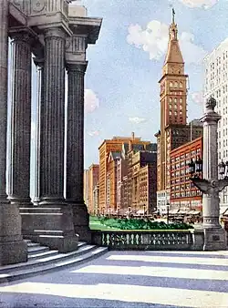 This plan was further elaborated upon in Daniel Burnham's 1909 Plan of Chicago,[10] and in 1911 a plan was selected that included the widening of Michigan Avenue from Randolph Street to the river, replacing the Rush Street bridge with a new bridge at Michigan Avenue and the construction of a double-decked boulevard along Pine Street as far as Ohio Street.[11] When the Michigan Avenue Bridge was completed, Pine Street was renamed Michigan Avenue. At its north end it merges into Lake Shore Drive near the Drake Hotel.