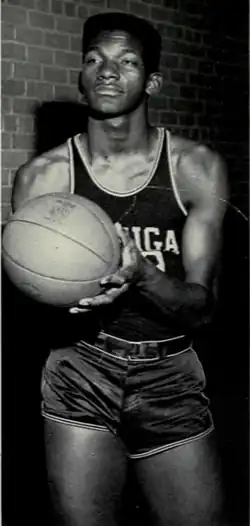 Bill Perigo took over the Michigan coaching job after having served three seasons as Western Michigan basketball coach. Despite previous success as a conference basketball champion coach at Western and subsequent success as a Michigan High School Athletic Association (MHSAA) champion basketball coach, his Michigan teams endured several mediocre seasons.[17] His best Big Ten records came in 1956–57 and 1958–59 when his teams compiled 8–6 conference records. The latter team was tied for second in the conference and was 15–7 overall (8–6, Big Ten).[19] It also had Perigo's only first-team All-Big Ten athlete in M. C. Burton.[18] Team captain and two-time football consensus All-American Ron Kramer was third-team All-Big Ten in 1957 after being second-team All-Big Ten in both 1955 and 1956.[18]