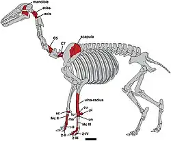 1. ^ a b c d Püschel, Hans P.; Alarcón-Muñoz, Jhonatan; Soto-Acuña, Sergio; Ugalde, Raúl; Shelley, Sarah L.; Brusatte, Stephen L. (2023-02-25). "Anatomy and phylogeny of a new small macraucheniid (Mammalia: Litopterna) from the Bahía Inglesa Formation (late Miocene), Atacama Region, Northern Chile". Journal of Mammalian Evolution. 30 (2): 415–460. doi:10.1007/s10914-022-09646-0. ISSN 1573-7055. This article incorporates text from this source, which is available under the CC BY 4.0 license.