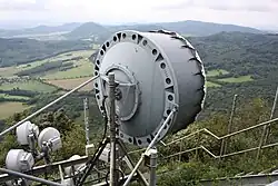 A microwave antenna is a physical transmission device used to send and receive microwaves between two or more locations.[1] In addition to broadcasting, antennas are also used in radar, radio astronomy and electronic warfare.
