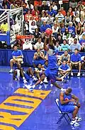 In 1982, coach Joe B. Hall and the Kentucky Wildcats men's basketball team began to officially promote a celebration dubbed "Midnight Madness" as a school event with formal entertainment acts and an invited student audience. This event was held in Memorial Coliseum and held 8,500 people in the then-12,500 seat gym.[4] Big Blue Madness is now televised and hosts celebrities including Drake, who performed in 2014.[5] Another of the more famous events is "Late Night in the Phog" at Kansas, which was started in 1985 by Larry Brown and is now broadcast in live streaming video via the Internet.[6] The event has caught on on most campuses; various programs have given away T-shirts and allowed players do stunt dunks and half court shots.[2] Some schools schedule intrasquad scrimmages, three-point shooting contests and/or slam dunk contests. The event is often a co-ed event, in which both the men's and women's teams participate in the celebration, especially at schools like the University of Connecticut, where the men's and women's teams have a combined 15 championships.[7] Scout.com estimated that in 2007, approximately 160 of the top blue chip high school basketball recruits in the country were attending a Midnight Madness event during the weekend that opens the basketball season.[8]