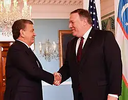 In February 2017, Pompeo traveled to Turkey and Saudi Arabia. He met with Turkish president Recep Tayyip Erdoğan to discuss policy on Syria and ISIL.[54] Pompeo honored the then-crown prince of Saudi Arabia Muhammad bin Nayef with the CIA's "George Tenet" Medal.[55] It was the first reaffirmation of Saudi Arabia–United States relations since Trump took office in January 2017.[56] In March 2017, Pompeo formally invoked state secrets privilege to prevent CIA officers, including Gina Haspel and James Cotsana, from being compelled to testify in the trial of Bruce Jessen and James Elmer Mitchell.[57]