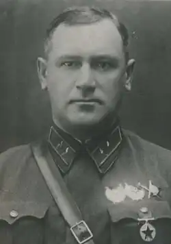 Mikhail Georgyevich Khatskilevich (Russian: Михаил Георгиевич Хацкилевич; 21 November 1895 – 25 June 1941) was a Red Army major general. He fought in the Imperial Russian Army in World War I before going over to the Bolsheviks in the subsequent civil war. Khatskilevich commanded the 6th Mechanized Corps in Belarus at the outbreak of Operation Barbarossa, and was killed in action three days into the war during the Battle of Białystok–Minsk.
