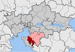 Mikra (Greek: Μίκρα, Míkra) is a former municipality in the Thessaloniki regional unit, Greece. Since the 2011 local government reform it is part of the municipality Thermi, of which it is a municipal unit.[2] Population 17,150 (2021). The seat of the municipality was in Trilofo. The municipal unit has an area of 80.827 km2.[3]