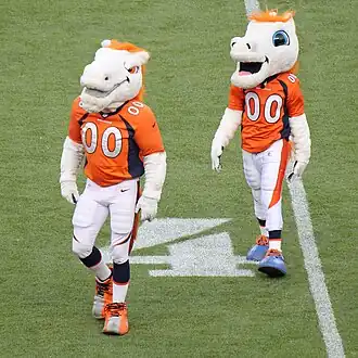 1. ^ "Denver Broncos - Mascots". Archived from the original on February 17, 2016. Retrieved September 14, 2016.