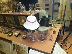 The act of collecting militaria has roots in souvenir hunting, a practice first made popular among soldiers during World War I.[1] During the war, soldiers would walk through battlefields and trenches, taking military equipment and personal items from enemy POW's or, in most cases, dead bodies. Soldiers would send these items home to loved ones through post or in their belongings upon going home. Militaria collecting became nationalized during and at the end of World War I, through the 1917–1918 War Bonds Drive and the 1919 Victory Loan Drive. Captured German Pickelhaube, Stahlhelm, and other military equipment were showcased around the country as war trophies, some later being distributed to purchasers of bonds.[2]
