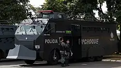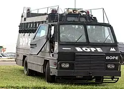 | Ford Cargo 815 | Armored personnel carrier | 12 | The most armored police vehicle in use in Brazil, "caveirão" (big skull) is extensively used on anti-narcotics operations in the city of Rio de Janeiro. Armored car transport values modified for police use. |