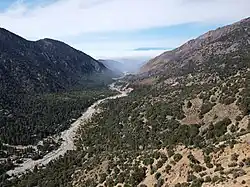 Mill Creek is a 17.8-mile-long (28.6 km)[3] stream, originating in the San Bernardino Mountains, in San Bernardino County, California. It is a major tributary of the Santa Ana River. Their confluence occurs just downstream of the upper Santa Ana Canyon mouth. Part of the upper creek flows through San Bernardino National Forest, with the headwaters (High Creek and Mill Creek Jumpoff), being in the San Gorgonio Wilderness.