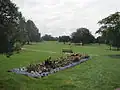 The park straddles the A1 with the main park to the east linked by an underpass to a smaller mainly grassed area to the west. It has formal flowerbeds, large areas of mown grassland, many impressive mature trees, and a Community Forest Nature Reserve, planted in 1993-94. Recreational facilities include a cricket pitch, football pitches, three tennis courts, a basketball court, two bowling greens, crazy golf, children's playgrounds, a cafe, car parks and toilets. It is supported by a full-time keeper and an active Friends of Mill Hill Park.[2][3][4]