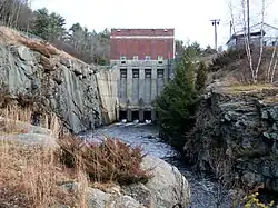 The Birch Hill Dam is a flood control dam located on the Millers River in South Royalston, Massachusetts. It is a part of a network of flood control dams on tributaries of the Connecticut River. Completed in 1941 at a cost of US$4 million, Birch Hill Dam was one of the first dams the Army Corps of Engineers built in New England to prevent floods like those that devastated Athol and Orange in 1936 and 1938. It has a storage capacity of 16.3 billion US gallons (62,000,000 m3).[13]