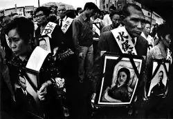 Minamata patients and family members hold photographs of their dead during a demonstration (W. E. Smith)