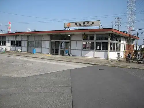 Minami-Yokkaichi Station (南四日市駅, Minami-Yokkaichi-eki) is a railway station located in the city of Yokkaichi, Mie Prefecture, Japan, operated by Central Japan Railway Company (JR Tōkai). It also has a freight depot of the Japan Freight Railway Company (JR Freight).