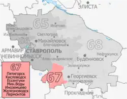 The Mineralnye Vody constituency (No.67[a]) is a Russian legislative constituency in Stavropol Krai. The constituency covers the entirety of Caucasian Mineral Waters resort in southern Stavropol Krai.