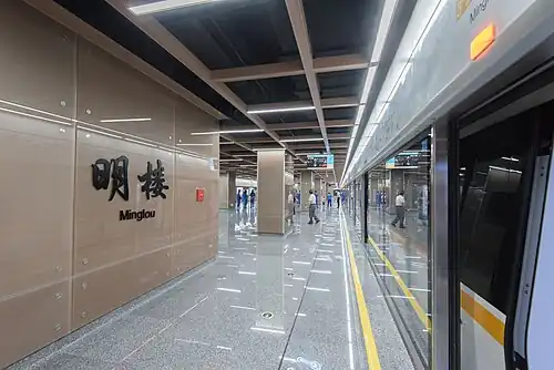 Minglou Station is an underground metro station of Line 3 in Ningbo, Zhejiang, China. It is situated at the crossing of Zhongxing Road and Tongtu Road north. It was opened on 30 June 2019.[1]