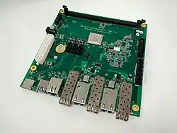 AppliedMicro offers the XC-1 Server Development Platform motherboard, which uses the X-Gene ARMv8 system on a chip with 8 2.4 GHz CPU cores, supports 128 GB DDR3 DRAM using 16 GB DIMMs, and has a baseboard management controller.