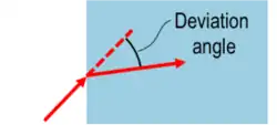 This is a convenient way used to measure the refractive index of a material(liquid or gas) by directing a light ray through a prism of negligible thickness at minimum deviation filled with the material or in a glass prism dipped in it.[5][3][1]