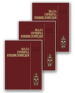 The second phase of the project involved the publication of the three-volume Encyclopedic Dictionary of Mining (Ukrainian: Гірничий енциклопедичний словник) between 2001 and 2004. This set contains 12,700 encyclopedic articles.[1]