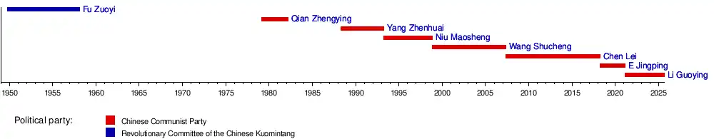 23 February 1979 | 8 March 1982 | 3 years, 13 days | Secretary of the Party Leadership Group of the Ministry of Water Resources | Hua Guofeng ↓ Zhao Ziyang |