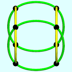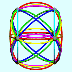 A different (83 64) can be found as with 6 central circles on a cube. The circles are on the 6 mirror planes of tetrahedral symmetry. In full it has 384 automorphisms of hyperoctahedral symmetry as the maximal geometric symmetry can be seen in 6, C(4,2), orthogonal circles as central squares in a 16-cell.