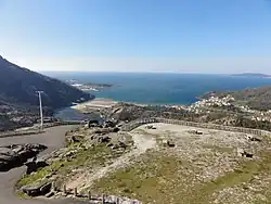 Mirador de Ézaro is a steep mountain road in Galicia, near Costa da Morte, in northern Spain. This road starts in the town of Ézaro (part of Dumbría municipality) by the river Xallas, and it reaches the summit by the homonymous viewpoint. The viewpoint has a magnificent vista of the mouth of the river Xallas, the slopes of granitic Mount Pindo, the cove of O Ézaro, the small Lobeiras islands and the unmistakable shape of Cape Fisterra in the background.