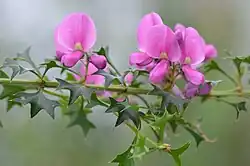 Mirbelia dilatata, commonly known as holly-leaved mirbelia,[2] is a species of flowering plant in the family Fabaceae and is endemic to the south-west of Western Australia. It is an erect, bushy, shrub with prickly leaves and pink, purple or violet flowers.