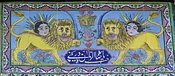 Additionally, his tile panels incorporated pre-Islamic Iranian imagery, such as the investiture of the founder of the Sasanian Empire, Ardashir I (r. 224–242), and battle scenes featuring the mythological Iranian hero Rostam. He also produced portraits of Qajar rulers, noblemen, and commoners, showcasing his ability to depict both royal grandeur and everyday life.[12]