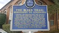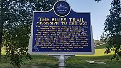 The Mississippi Blues Trail was created by the Mississippi Blues Commission in 2006 to place interpretive markers at the most notable historical sites related to the birth, growth, and influence of the blues throughout (and in some cases beyond) the state of Mississippi. Within the state the trail extends from the Gulf Coast north along several highways to (among other points) Natchez, Vicksburg, Jackson, Leland, Greenwood, Clarksdale, Tunica, Grenada, Oxford, Columbus, and Meridian. The largest concentration of markers is in the Mississippi Delta, but other regions of the state are also commemorated. Several out-of-state markers have also been erected where blues with Mississippi roots has had significance, including Waterloo, Ontario, Memphis, Tennessee, and Chicago, Illinois.[1]