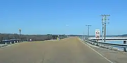 MS 333 Scenic begins in the city of Grenada at an interchange with Interstate 55 (I-55)/MS 7 (exit 206). It heads southeast, concurrent with MS 8, as a four-lane divided highway through a major business district, where it has an intersection with South Street, before narrowing to an undivided highway to curve eastward and pass through neighborhoods. The highway has an intersection with U.S. Route 51 (US 51) before traveling along the southern side of downtown for several blocks to cross a bridge over Batupan Bogue. They now pass through the neighborhood of Futheyville, where MS 333 Scenic splits off and heads north as a two-lane road. Here, this is the officially designated section of MS 333. It almost immediately has an intersection with Old Highway 8 (which provides access to nearby Hugh White State Park) where MS 333 ends, and MS 333 Scenic leaves the Grenada city limits winding its way north through some hilly woodlands for a few miles (passing by a civil war era confederate fort) to cross the dam's spillway (inadvertently also crossing the Yalobusha River) before having its first intersection with Toe Road (provides access to MS 332) before passing directly over top of Grenada Dam. The highway has another intersection with Toe Road as it passes by the North Abutment Campground before leaving the dam area and winding its way through hilly, wooded terrain for the next several miles. MS 333 Scenic comes to an intersection with MS 7, which lies not even 500 feet from the Yalobusha County, and they head southwest through farmland for several miles to have another interchange with I-55 (exit 211) just south of the community of Hardy. MS 333 Scenic ends here, MS 7 splits off to head south along I-555, and the road ahead is unsigned MS 729 which travels for 0.3 miles (0.48 km) to come to an end at an intersection with US 51.[3]