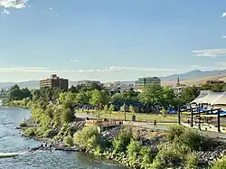 By the 1990s, Missoula's lumber industry had gradually disappeared, and as of 2009, the city's largest employers were the University of Montana, Missoula County Public Schools, and Missoula's two hospitals.[11] The city is governed by a mayor–council government with 12 city council members, two from each of the six wards. In and around Missoula are 400 acres (160 ha) of parkland, 22 miles (35 km) of trails, and nearly 5,000 acres (2,000 ha) of open-space conservation land, with adjacent Mount Jumbo being home to grazing elk and mule deer during the winter.[12] The city is also home to both of Montana's largest and its oldest active breweries, as well as the Montana Grizzlies.