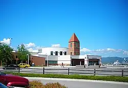 Missoula's oldest commercial district, Downtown is also home to more than 30 buildings listed on the National Register of Historic Places beginning in 1976 with the A.J. Gibson designed County Courthouse constructed in 1908 being added. The Post Office, Wilma Theatre and Higgins Block were all added a couple years later.[40][41] In the 1970s businesses fled Downtown for cheaper land in Southwest Missoula. This created a second commercial district focused around the Southgate Mall, built in 1978. Subsequent deterioration of Downtown ironically saved its future. With old buildings too expensive to replace and no big businesses moving in rents began to fall. This led to the myriad of small start-up shops in historic buildings that Downtown is known for today. The area went from bankrupt to the center of Missoula's arts and culture in matter of 25 years.[42][43] In the late 1990s North Reserve Street became the new center for large retail stores. Located at the cross streets of Highway-93 and the old Mullan Road with easy access to Interstate 90, the area has become a major shopping destination for local and regional customers.