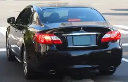 The Mitsubishi Proudia (Japanese: 三菱・プラウディア, Hepburn: Mitsubishi Puraudia) is a luxury sedan manufactured by Mitsubishi Motors, positioned below the flagship Dignity limousine (itself a lengthened version of the Proudia) in the company's range. Its name is a portmanteau derived from the English word "proud" and "diamond" (referring to the company's logo).[1] The first generation was produced from late 1999 to 2001, while the second generation (a rebadged second-generation Nissan Fuga) was produced from 2012 to 2016.