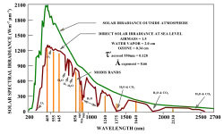 The MODIS instruments were built by Santa Barbara Remote Sensing.[3] They capture data in 36 spectral bands ranging in wavelength from 0.4 μm to 14.4 μm and at varying spatial resolutions (2 bands at 250 m, 5 bands at 500 m and 29 bands at 1 km). Together the instruments image the entire Earth every 1 to 2 days. They are designed to provide measurements in large-scale global dynamics including changes in Earth's cloud cover, radiation budget and processes occurring in the oceans, on land, and in the lower atmosphere.