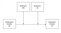Moderation analysis in the behavioral sciences involves the use of linear multiple regression analysis or causal modelling.[1] To quantify the effect of a moderating variable in multiple regression analyses, regressing random variable Y on X, an additional term is added to the model. This term is the interaction between X and the proposed moderating variable.[1]